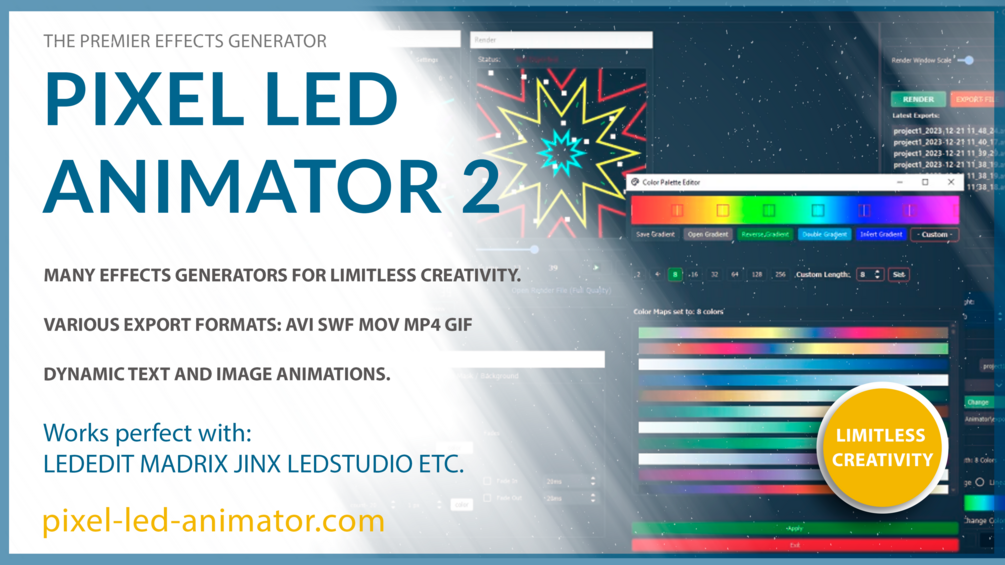 Pixel LED Animator 2: Advanced LED Effects & Animation Software โ Seamless Compatibility with LedEdit, JINX!, Glediator | Supports AVI, SWF, MP4, MOV